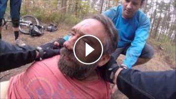 Over the bars mountain bike crash - Rider knocked unconscious.